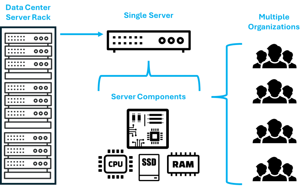 Cloud computing works by running workloads through servers. Servers are physical machines that contain hardware for processing and storing data. However, a single data center server usually has a much greater capacity than would be needed by a single customer. Therefore, cloud computing customers pay for virtual machines, or instances, which consume a certain proportion of the entire server’s resources.